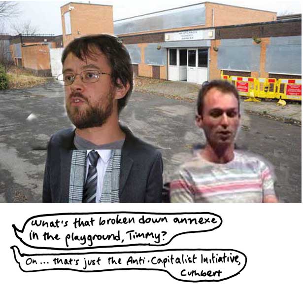 scandal over Billy Delta's trousers: "Now that all the parents have taken their children away from Dr Stallinicos' Academy, Me and the Parents got together, and decided to take advantage of Mr Gove's idea of making our own 'free school', along progressive lines!" |
