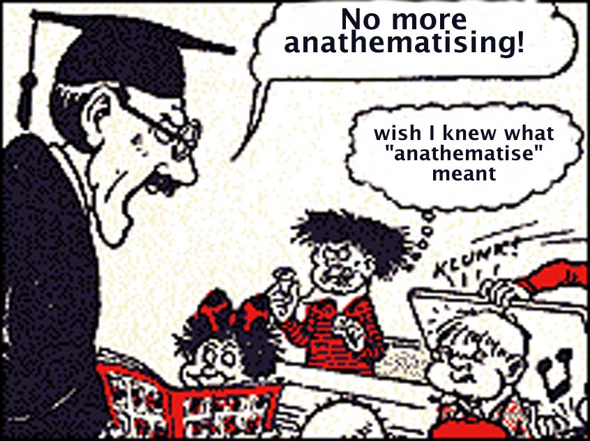 Bash Street, and Teacher is finding it hard dinning it into the kids'