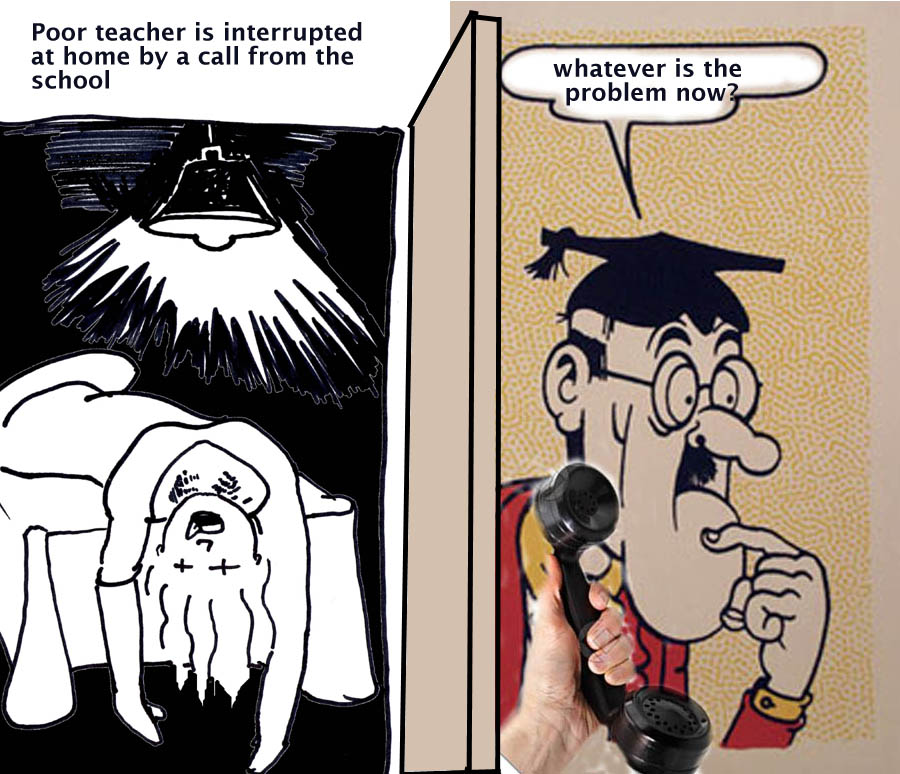 | 'Now that Dicky Knows-more has qualified as a trainee teacher he can take over teaching the classes" |