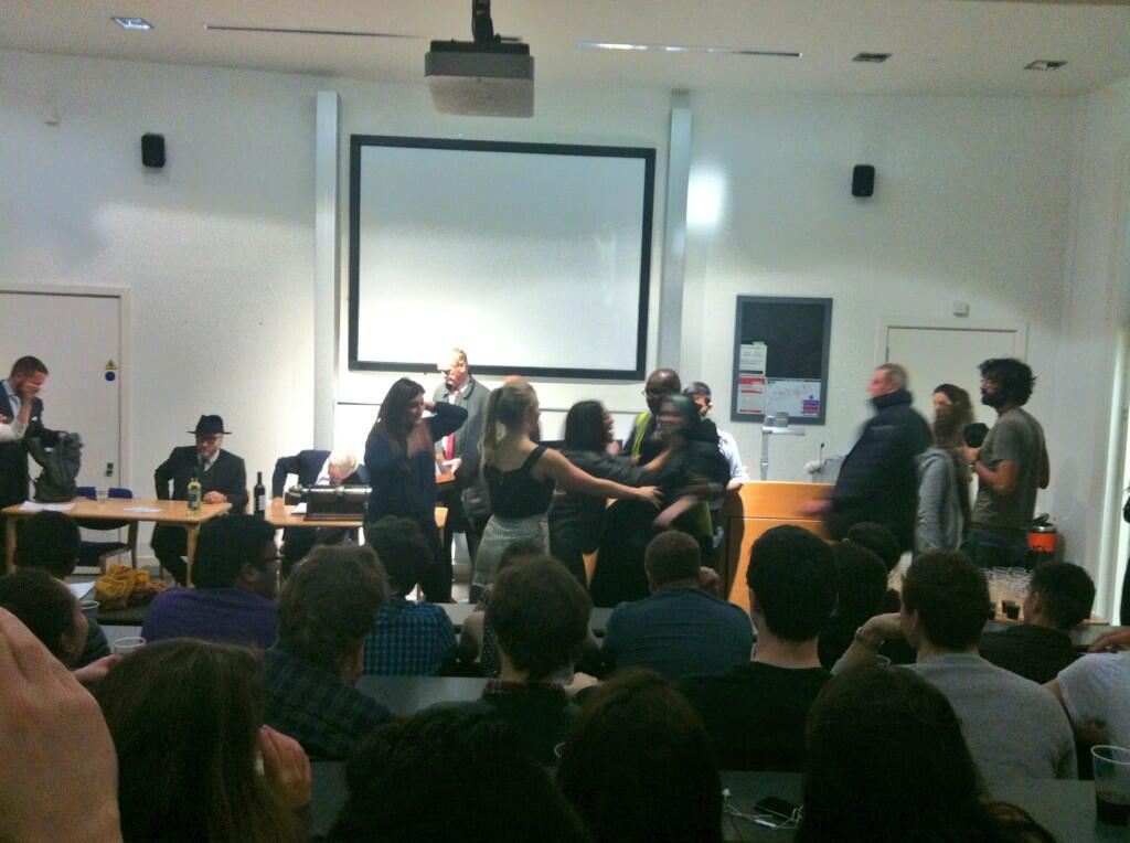 Calling anti-war campaigner George Galloway a rape apologists, these protestors tried to break up a debate over the UN at the University College of London Union, 27 Jan 2014